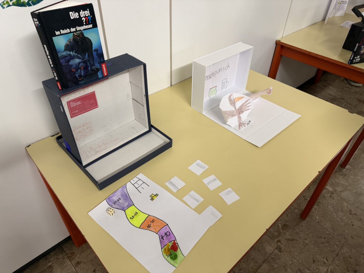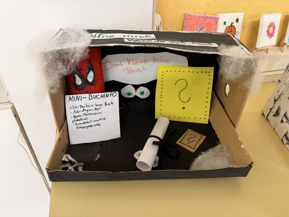 Die fertigen Werke wurden einander präsentiert und vorgestellt – mit viel Engagement, Fantasie und Begeisterung fürs Lesen. Auch die 1. und 2. Klassen waren eingeladen, die Bücherboxen zu bestaunen und in die vielfältigen Buchwelten einzutauchen.
