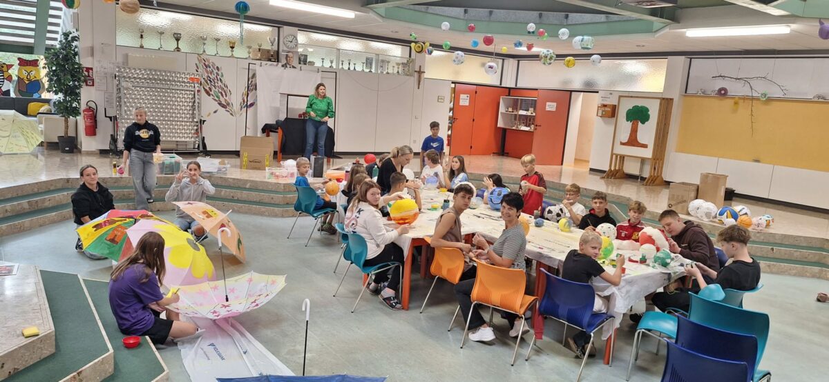 Während die Kinder der 1. Klasse ihre Klassengemeinschaft stärkten arbeiteten die Schülerinnen und Schüler der 2. bis 4. Klassen diese beiden Tage als Vorbereitung auf unser 50-jähriges Jubiläum sehr fleißig im Atelierunterricht. Hier konnten sie ihre Kreativität unter Beweis stellen und es lassen sich schon große Fortschritte in unserem Schulgebäude erkennen. Seid gespannt!
