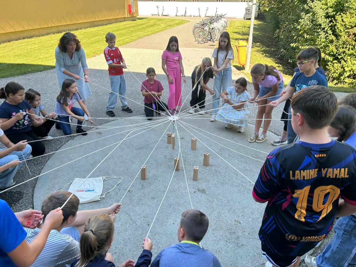 In dieser Woche durften unsere beiden ersten Klassen ihre Kennenlerntage in und rund um unsere Mittelschule verbringen. Im Mittelpunkt standen Spiele und Aktivitäten, die Teamgeist und Zusammenarbeit förderten. Die Schülerinnen und Schüler hatten viel Gelegenheit, einander näher kennenzulernen, Vertrauen aufzubauen und ihre eigenen Stärken in die Gruppe einzubringen. Ob beim gemeinsamen Lösen von Aufgaben, bei kreativen Spielen wie „Zwei Wahrheiten und eine Lüge“ oder bei sportlichen Herausforderungen wie dem Sackhüpfen , es war überall Freude und Begeisterung spürbar. So entwickelte sich rasch eine positive Stimmung in den Gruppen, in der alle mit viel Spaß und Motivation dabei waren.
