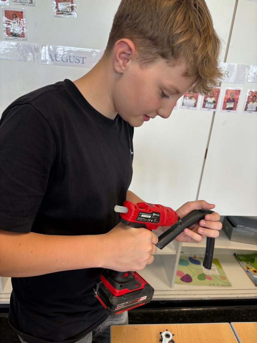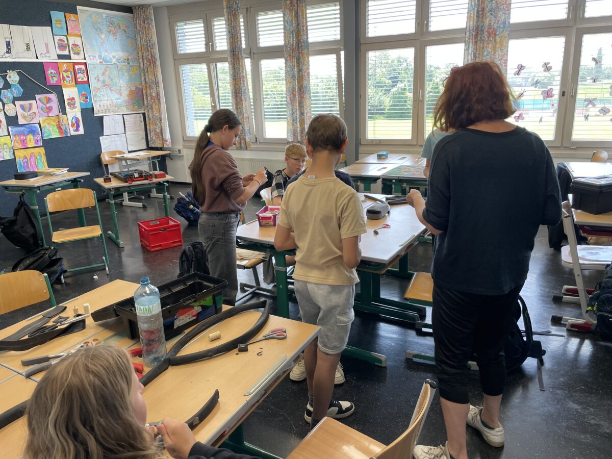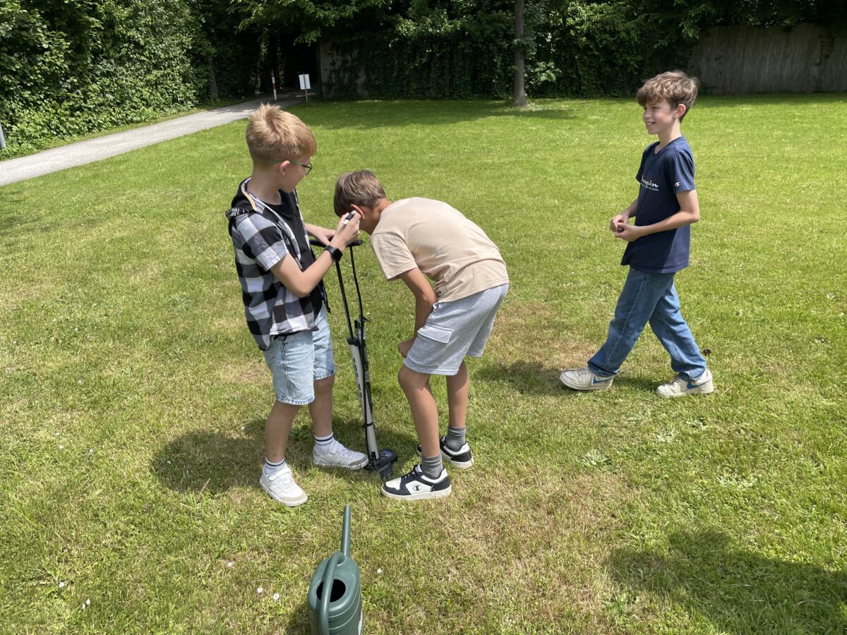 In der darauffolgenden Woche war das Alt-Mach-Neu-Mobil „Schrotty und Engy“ von Fratz Graz zu Besuch an unserer Schule. Hier drehte sich alles um Upcycling und erneuerbare Energie. Aus alten Materialien bastelten die Kinder kreative Raketen aus Wasserflaschen und Fahrradpumpen und erzeugten zudem mit einem speziellen Fahrrad Strom durch Bewegung. Auch hier hatten die Schülerinnen und Schüler sichtlich Spaß und lernten viele neue Dinge kennen.